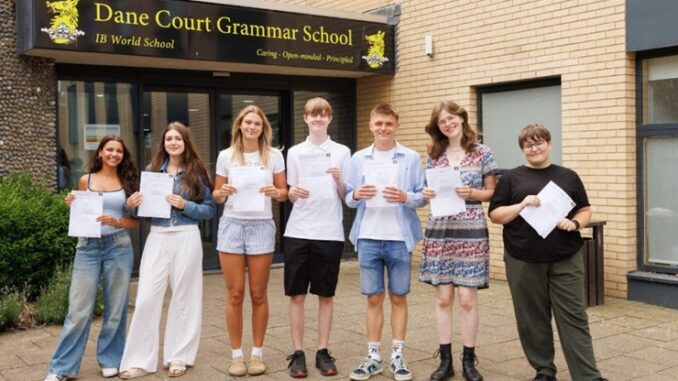 Dane Court Grammar School is delighted to celebrate another year of outstanding GCSE results, with the school once again achieving an Attainment 8 score above 65 and nearly half of all entries awarded grades 7 or higher.